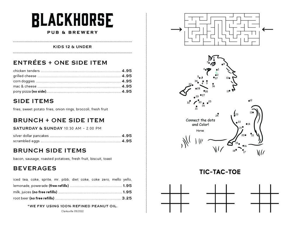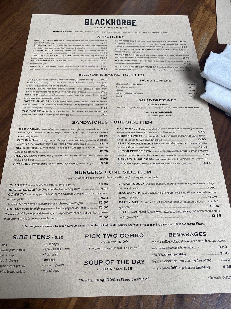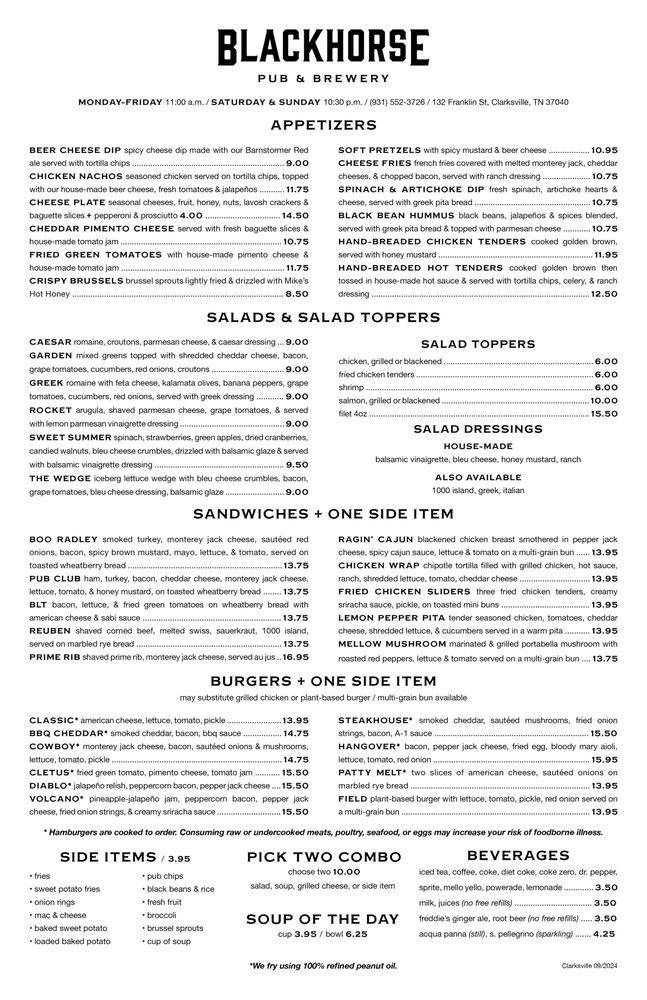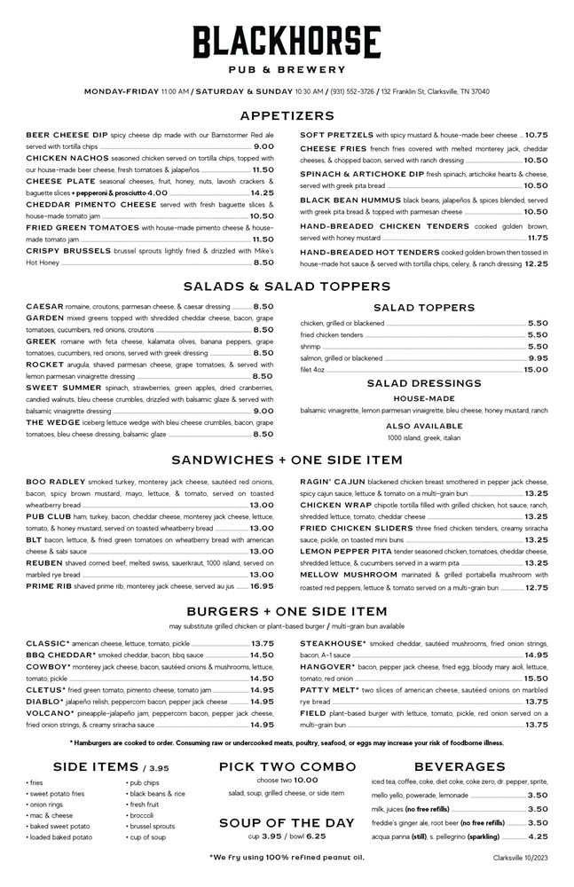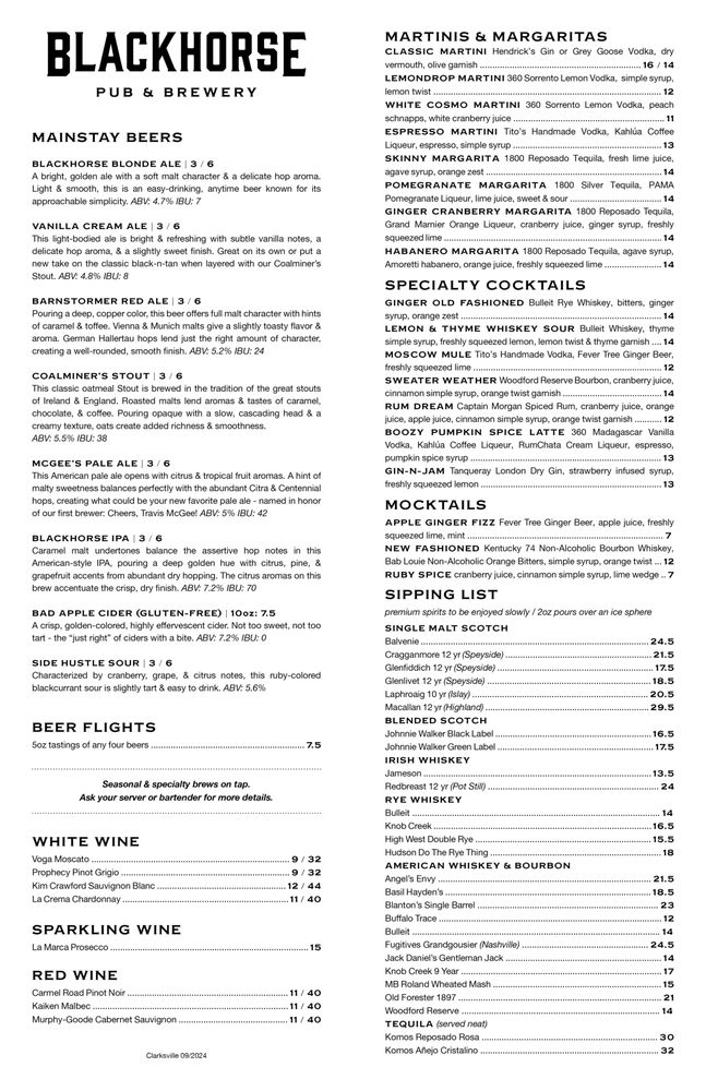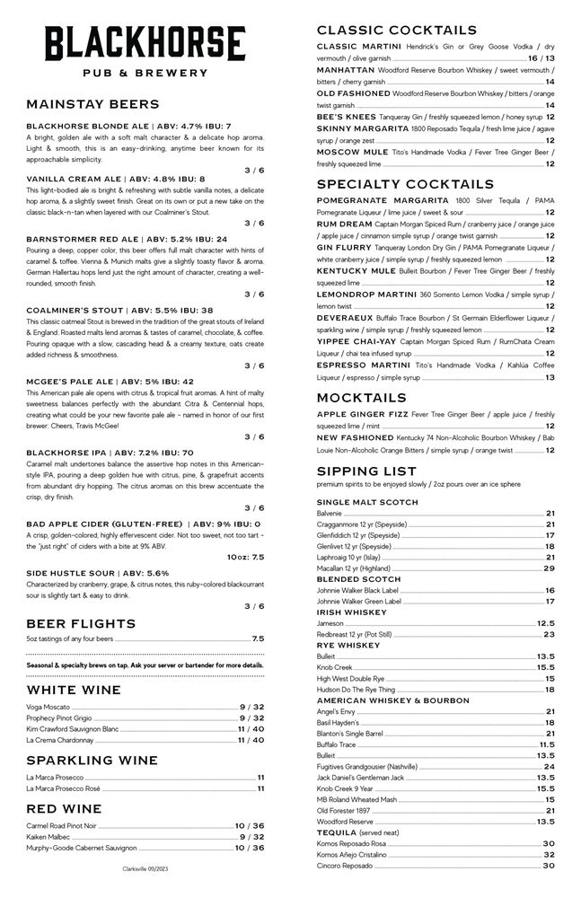 Blackhorse Pub & Brewery Clarksville Menu (Update 2025)